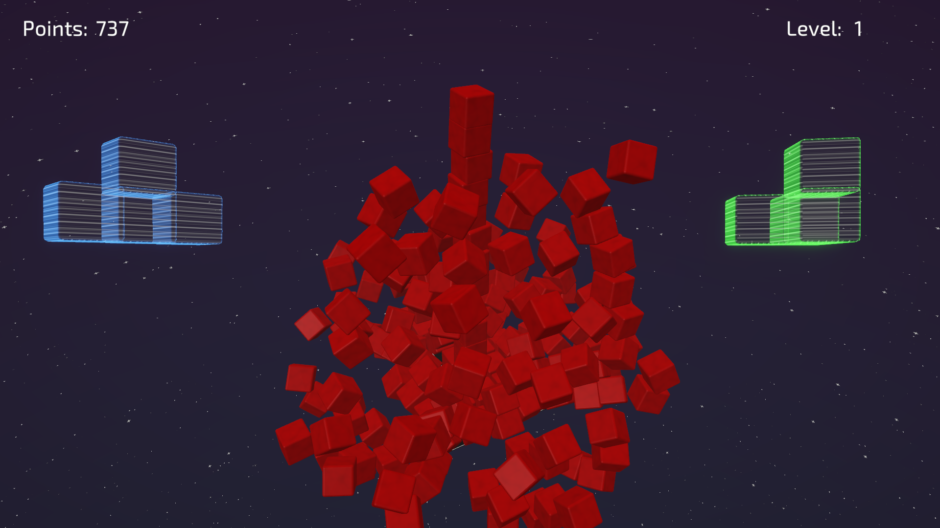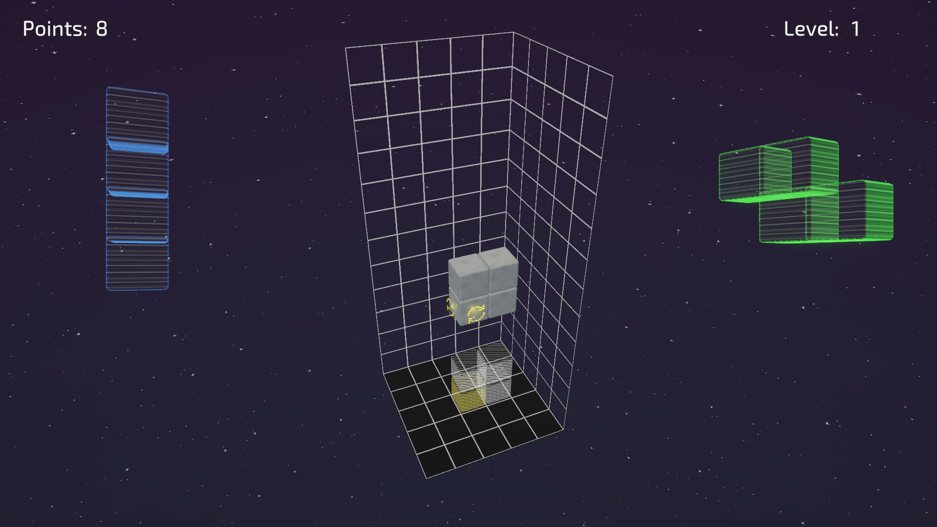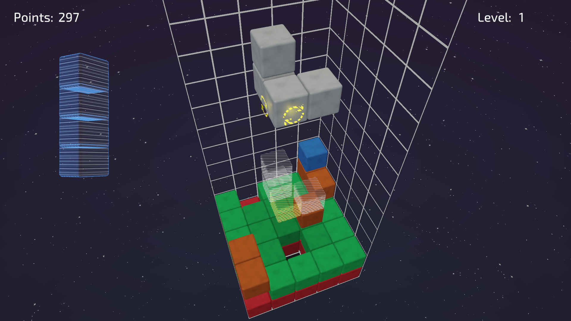 This is a demo of Quadcubes - a minimalist puzzle game where you move, rotate, and stack falling blocks across all three axes to fill and clear layers.